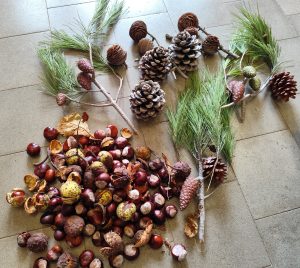 Hem tret els pinyons de les pinyes i ens els hem menjat. També hem tastat la magrana i el moniato; i hem torrat castanyes, però per menjar-nos-les hem hagut de pelar-les, quina feinada!